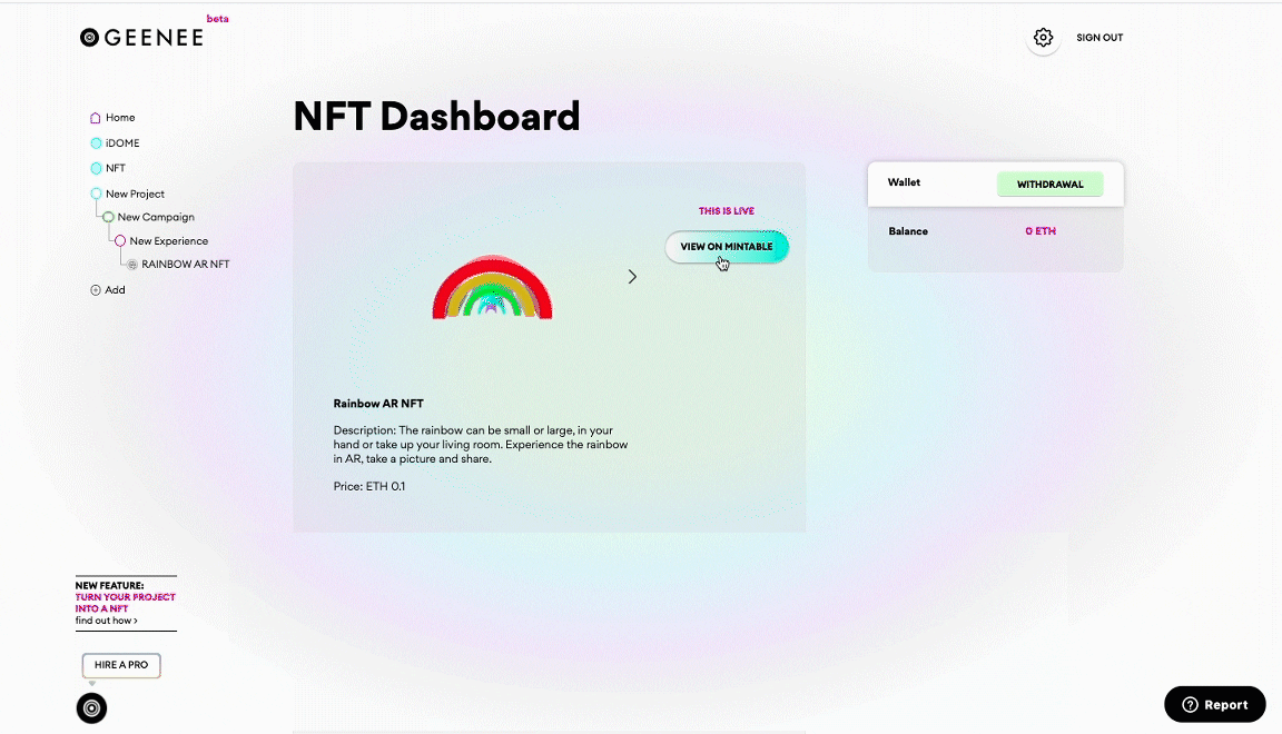 Geenee is excited to announce our partnership with the NFT exchange Mintable. Now anyone can mint interactive AR creations directly from the drag & drop Geenee WebAR Builder and have them instantly listed to the Mintable marketplace.