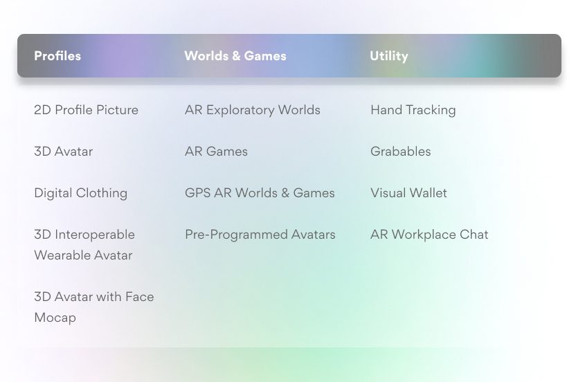 - ability to store your items in a interoperable visual 3D wallet