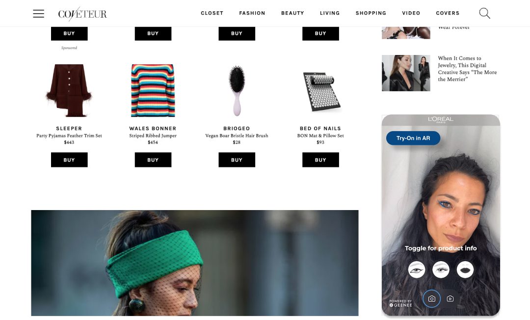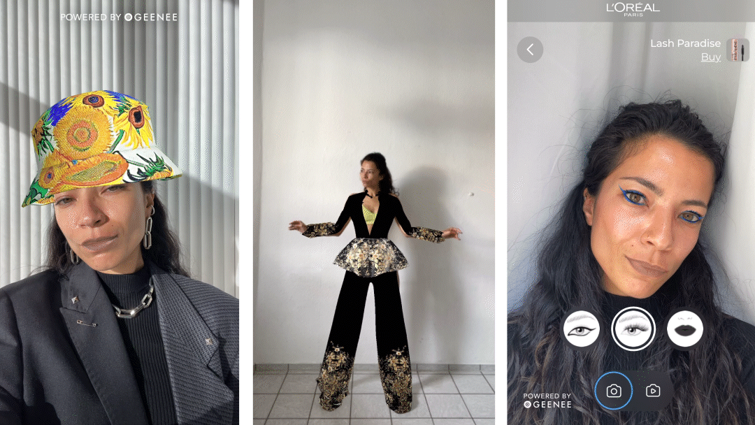 With Geenee, product preview can not only be applied to products like furniture (brands can take advantage of our “True Size” feature in the WebAR Builder to give their customers an accurate sense of how a large-scale item might look in their space) but also to accessories like sunglasses, hats, and makeup, and uniquely, to fashion. Geenee AR is the only Web AR platform to offer full-body tracking for the browser, meaning brands can leverage virtual try-on to allow customers to try on any garment prior to purchase.