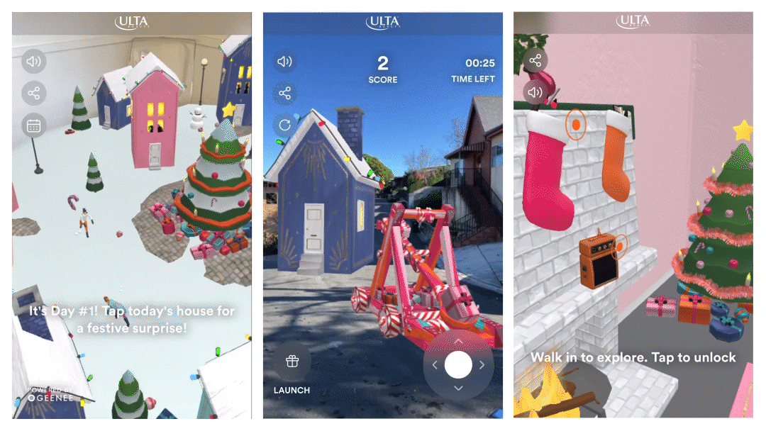For example, Geenee recently partnered with Ulta Beauty on a 12 days of WebAR Advent Calendar. Over the course of 12 days leading up to the holidays, Ulta’s top customers were invited to participate in a unique AR experience each day, including games, face filters and exclusive promotional rewards that could be redeemed when shopping online. The campaign helped keep Ulta top of mind among its most loyal customers, who were most likely to spend money on beauty products in the leadup to the holiday season.