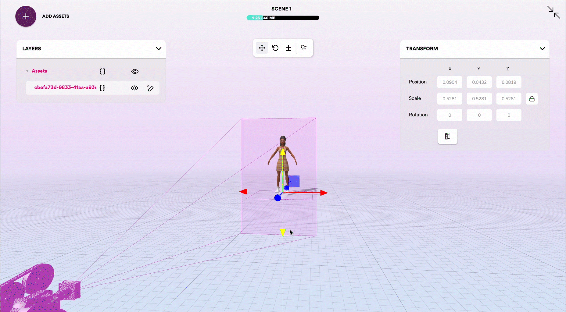 Sign into your existing Ready Player Me account directly from Geenee. From there select the avatar you wish to place in your AR scene. The avatar will then appear in the 3D editor. You can scale, rotate, re-position the avatar, or use the code inject feature to add some additional interactivity.
